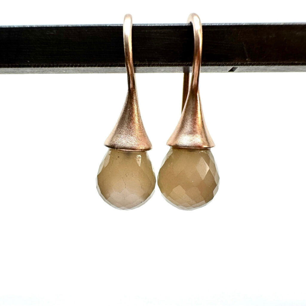 Silber rosévergoldet mit braunen Mondsteinpampeln facettiert