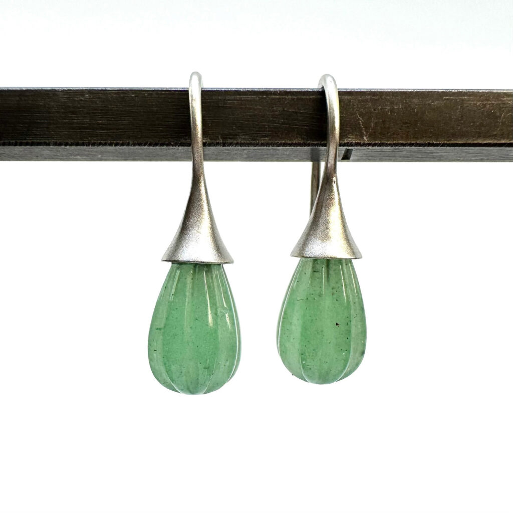 Silber Weißgold Ohrhänger mit Prasiolith facettiert zwiebelform