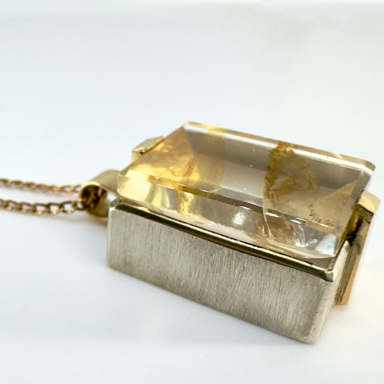 Diese elegante Flachpanzerkette aus 585er Gelbgold (Gliedermaß 0,6 × 1,6 mm) überzeugt durch ihre edle Optik und großzügige Länge von 70 cm. Der Blickfang ist der Bicolor-Anhänger: Ein markanter Quarzstein in geometrischer Fassung, kombiniert aus 925er Silber und 585er Gelbgold. Mit seinen Maßen von 29,5 × 10,47 × 16 mm setzt der Anhänger ein modernes, klares Statement und verleiht dem Schmuckstück eine architektonische Note.