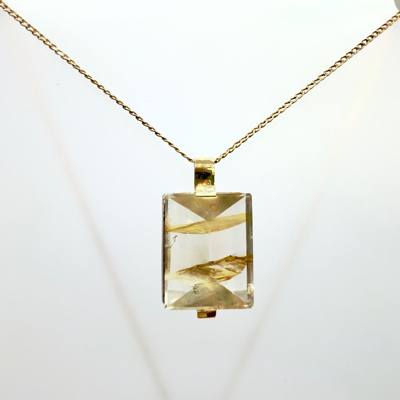 Goldene Flachpanzerkette mit Bicolor-Quarzanhänger