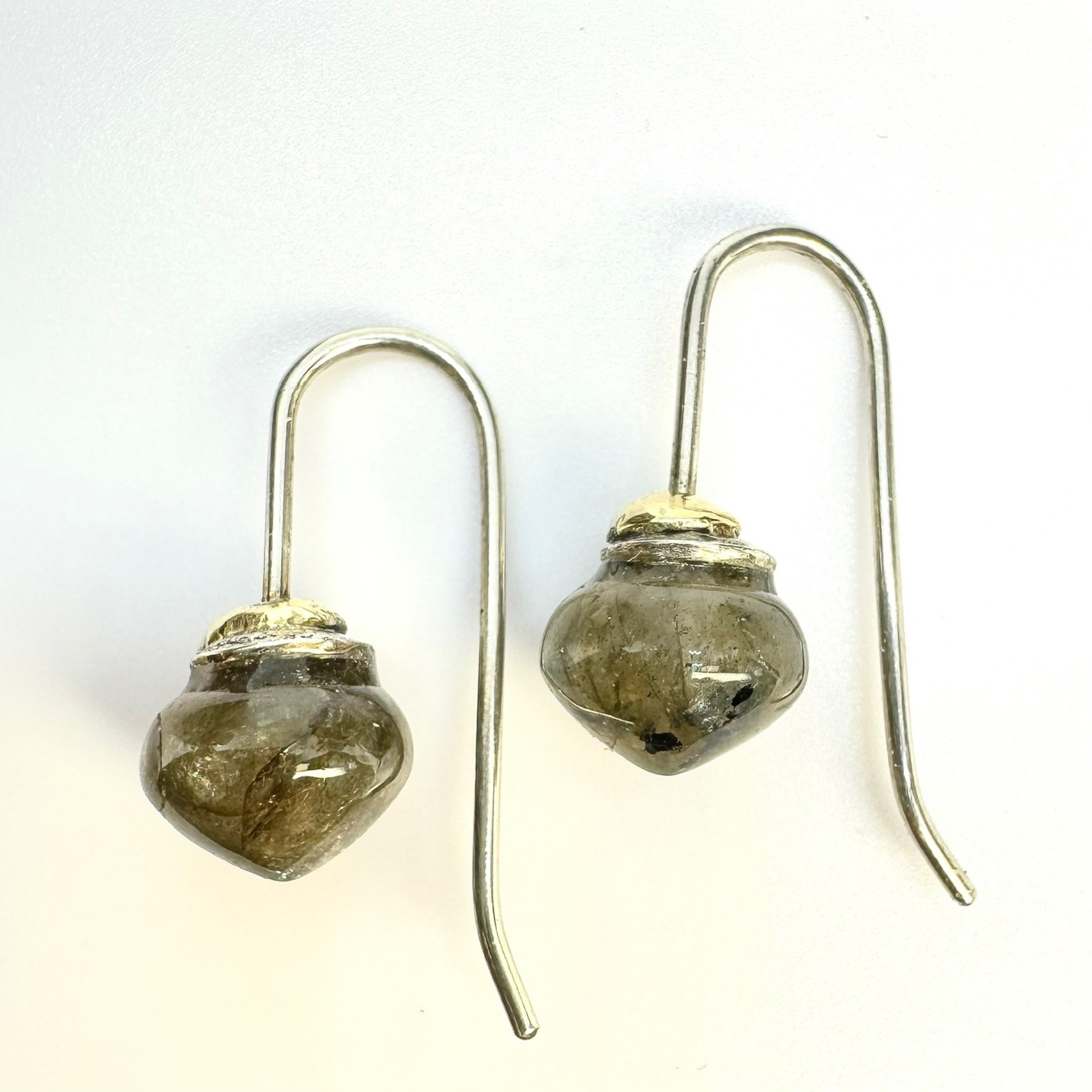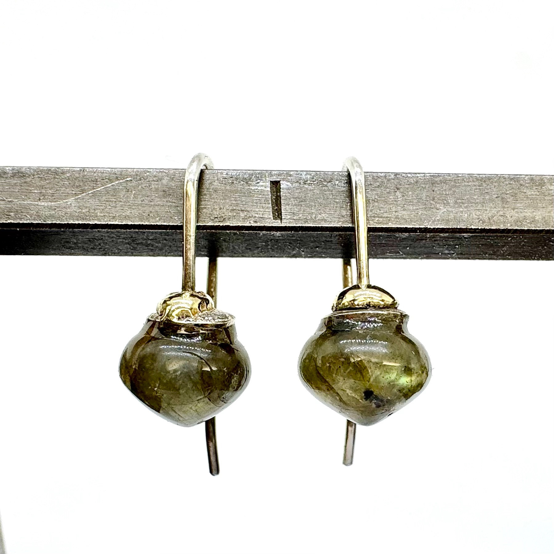 Labradorith-Pampeln in Silber gearbeitet mit Gelbgoldkäppchen