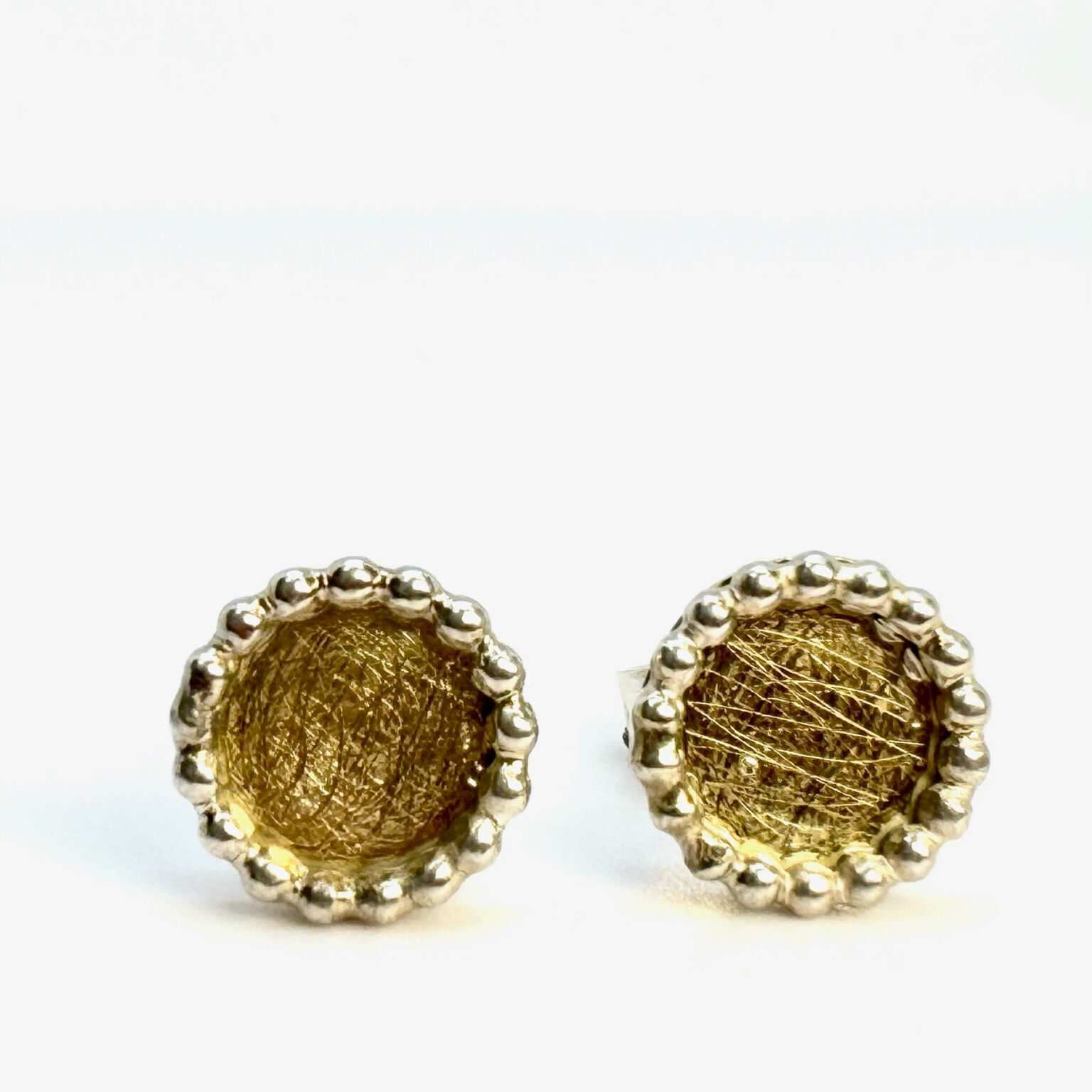 Elegante Ohrstecker mit filigranem Stift und zarten Kugeln aus glänzendem 925/000 Silber, kombiniert mit einem warmen Boden aus 585er Gelbgold. Das Zusammenspiel der Materialien setzt edle Akzente und verleiht jedem Look eine luxuriöse Note.
