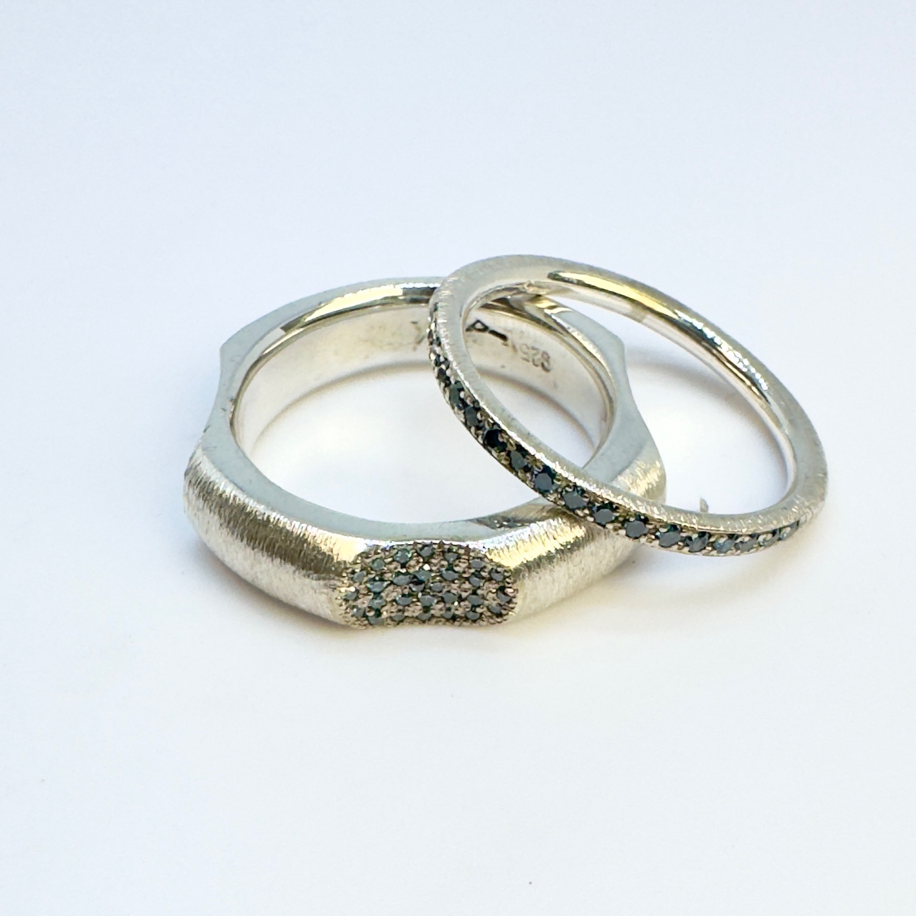 Silberring mit 18 blauen Brillanten im Verschnitt gefasst (0,09 ct)