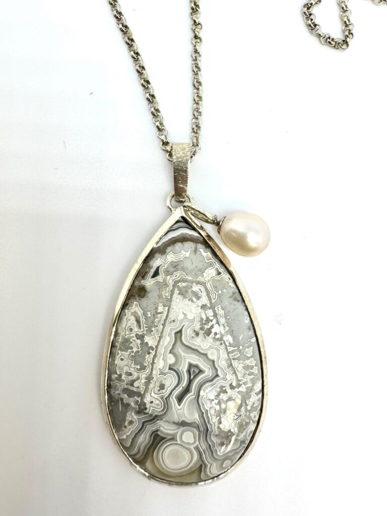 Graue Süßwasser-Perlenkette mit Bajonette-Schließe
