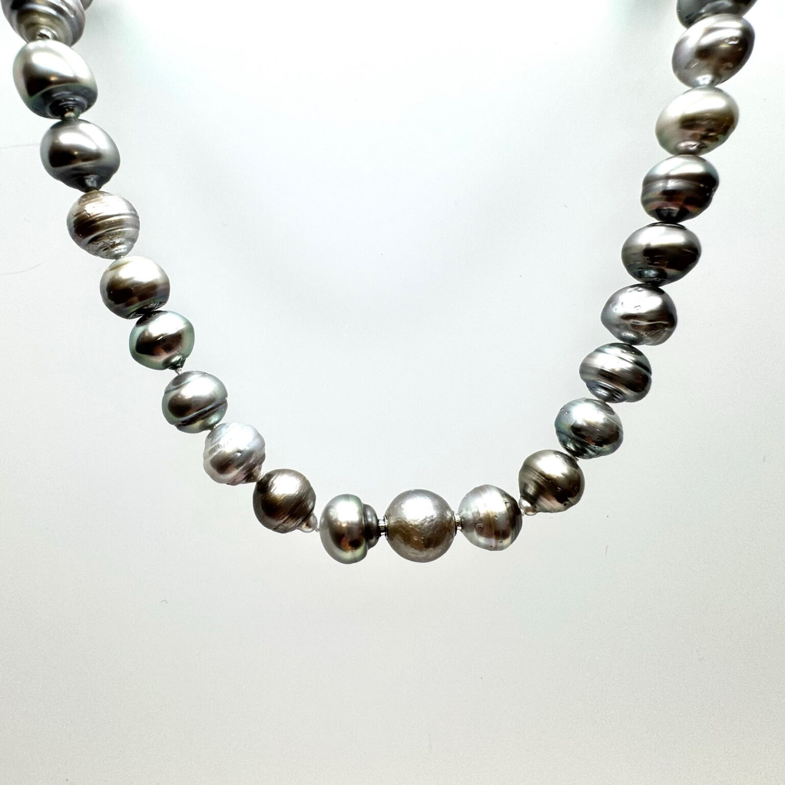 Diese klassische Perlenkette aus grauen Süßwasser-Zuchtperlen überzeugt durch ihre gleichmäßige Form, ihren seidigen Schimmer und ihre zeitlose Eleganz. Die ca. 11 mm großen Perlen wirken markant und zugleich weich im Ausdruck. Die Bajonette-Schließe sorgt für einen sicheren Halt und fügt sich dezent in das edle Gesamtbild ein.
