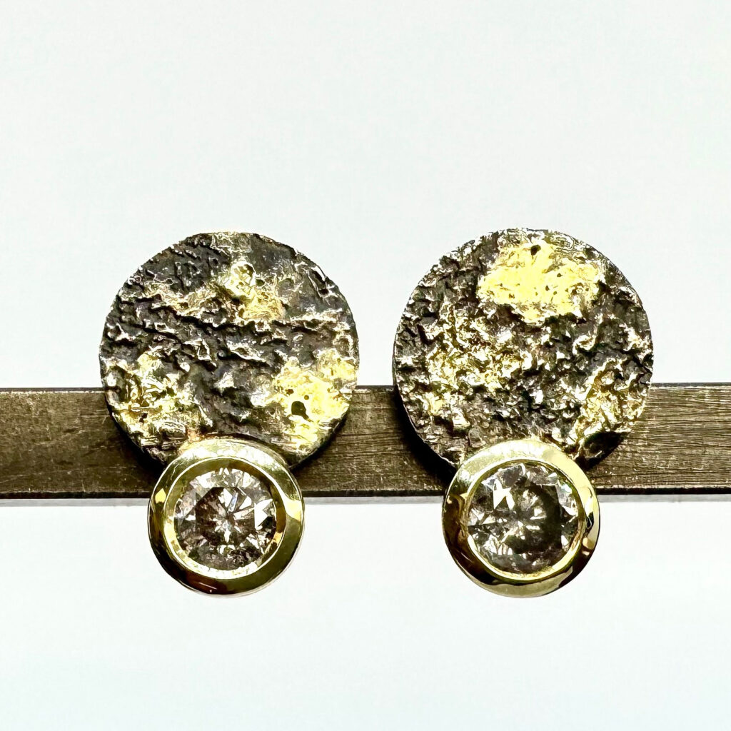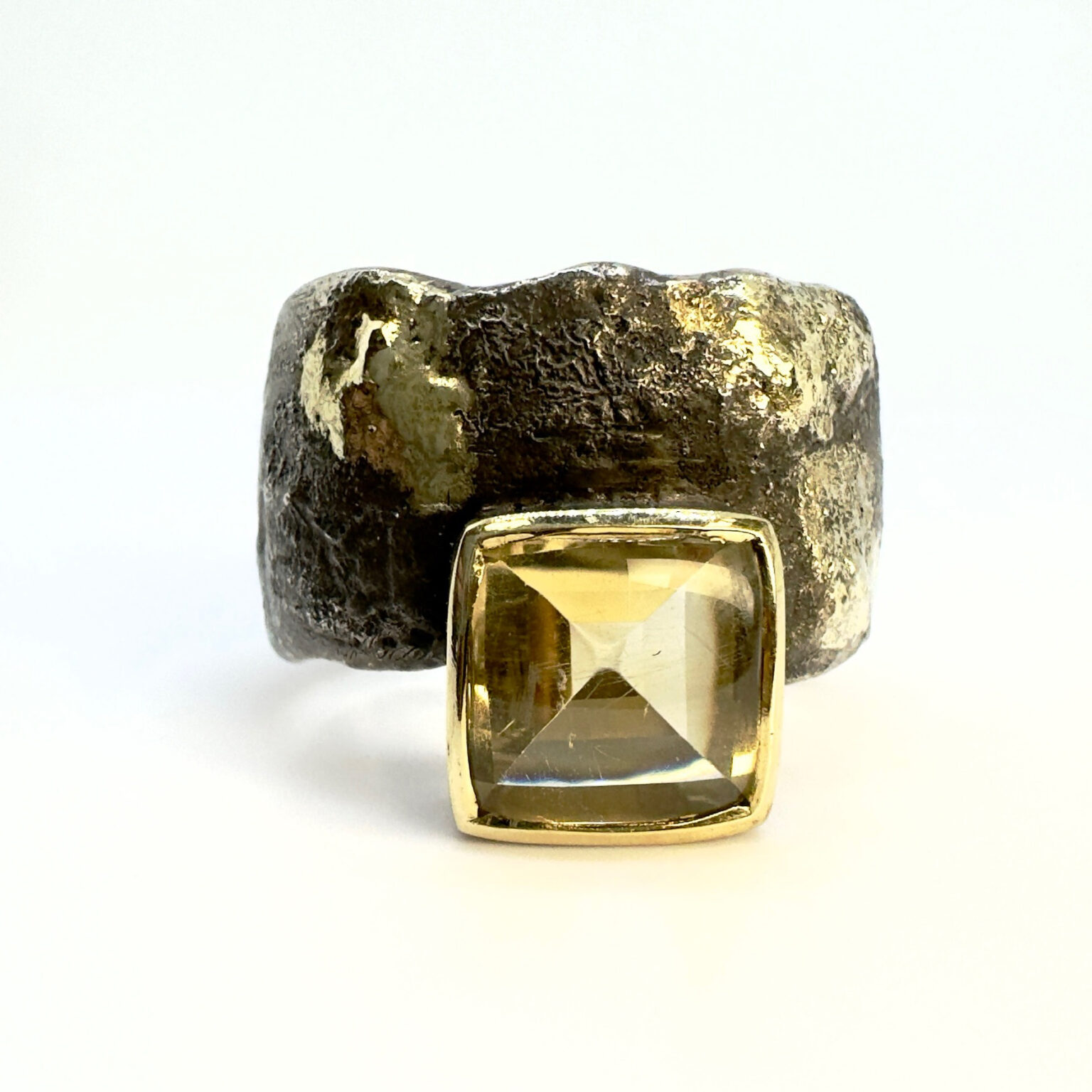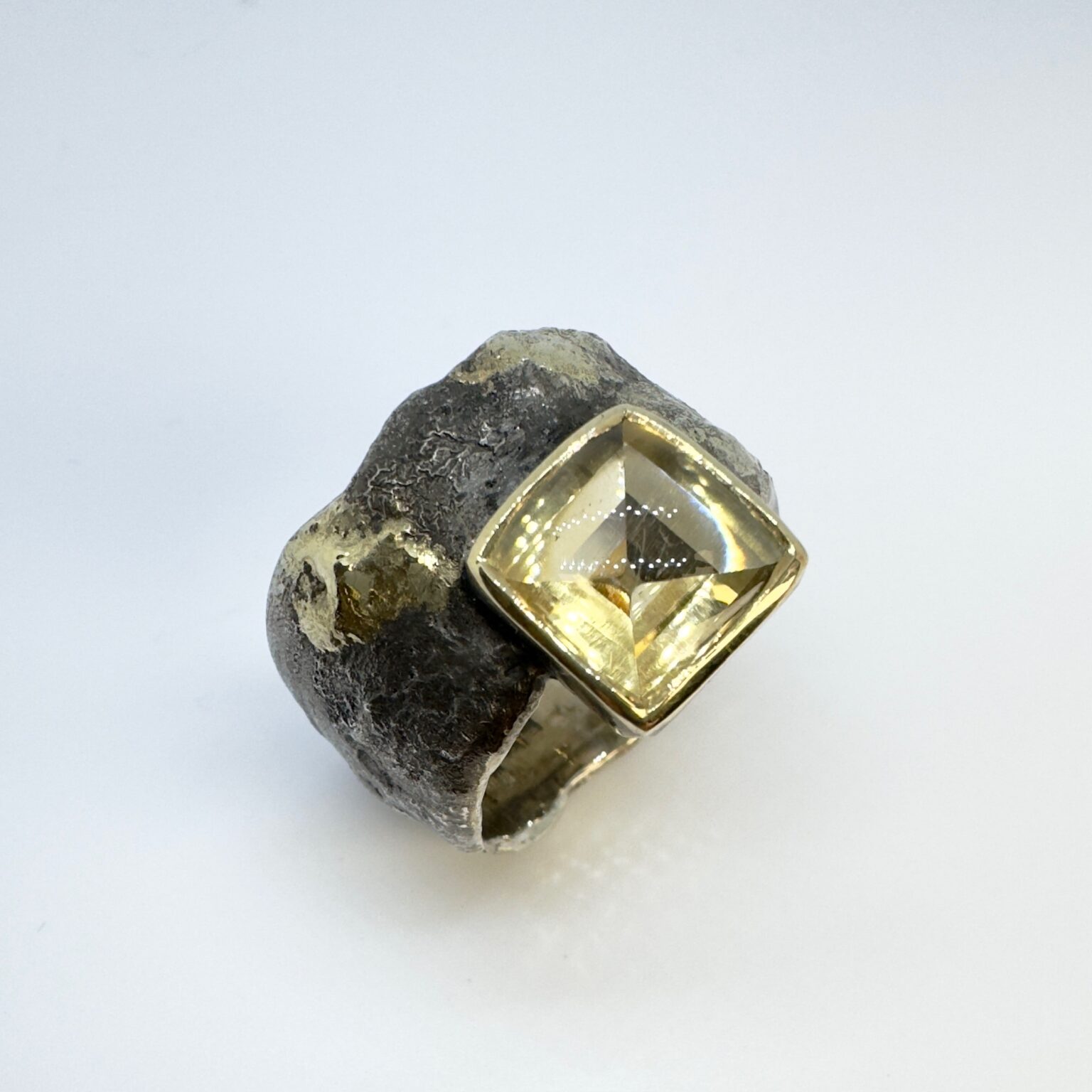 Silberring mit geschmorter Oberfläche und Gelbgoldfassung mit Citrin
