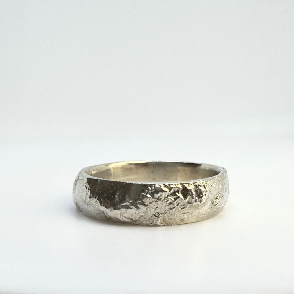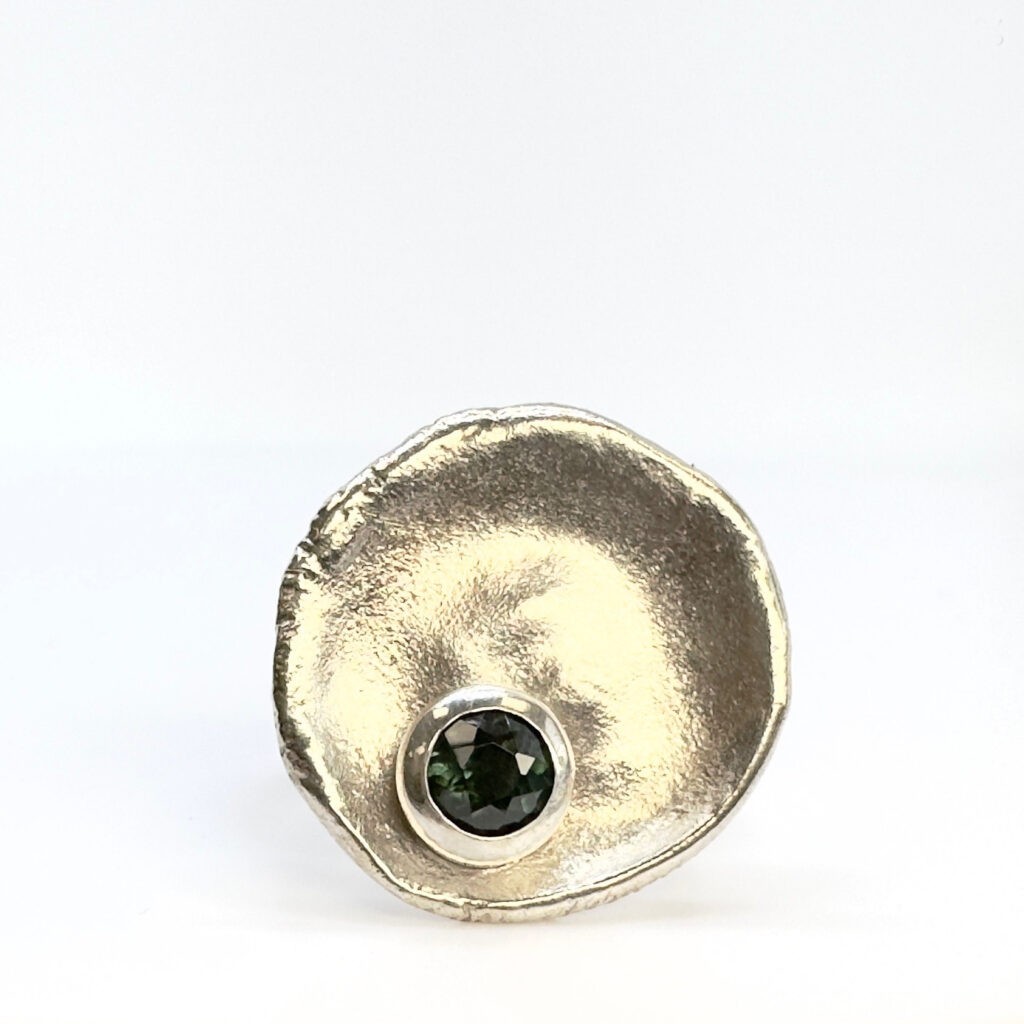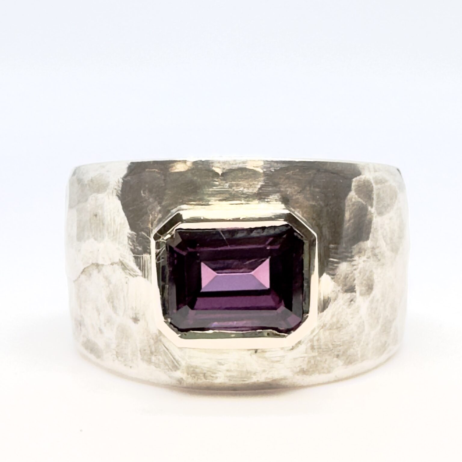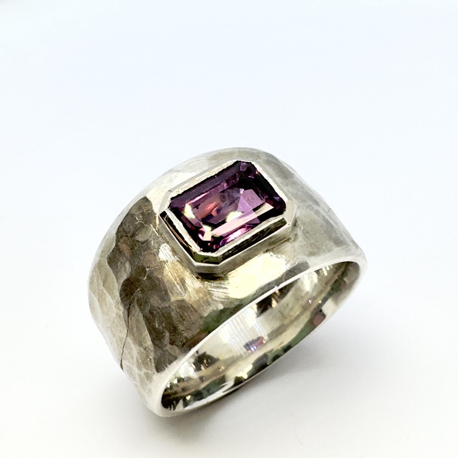 Silberring mit gehämmerter Oberfläche und pinkem Turmalin in 585 Weißgold