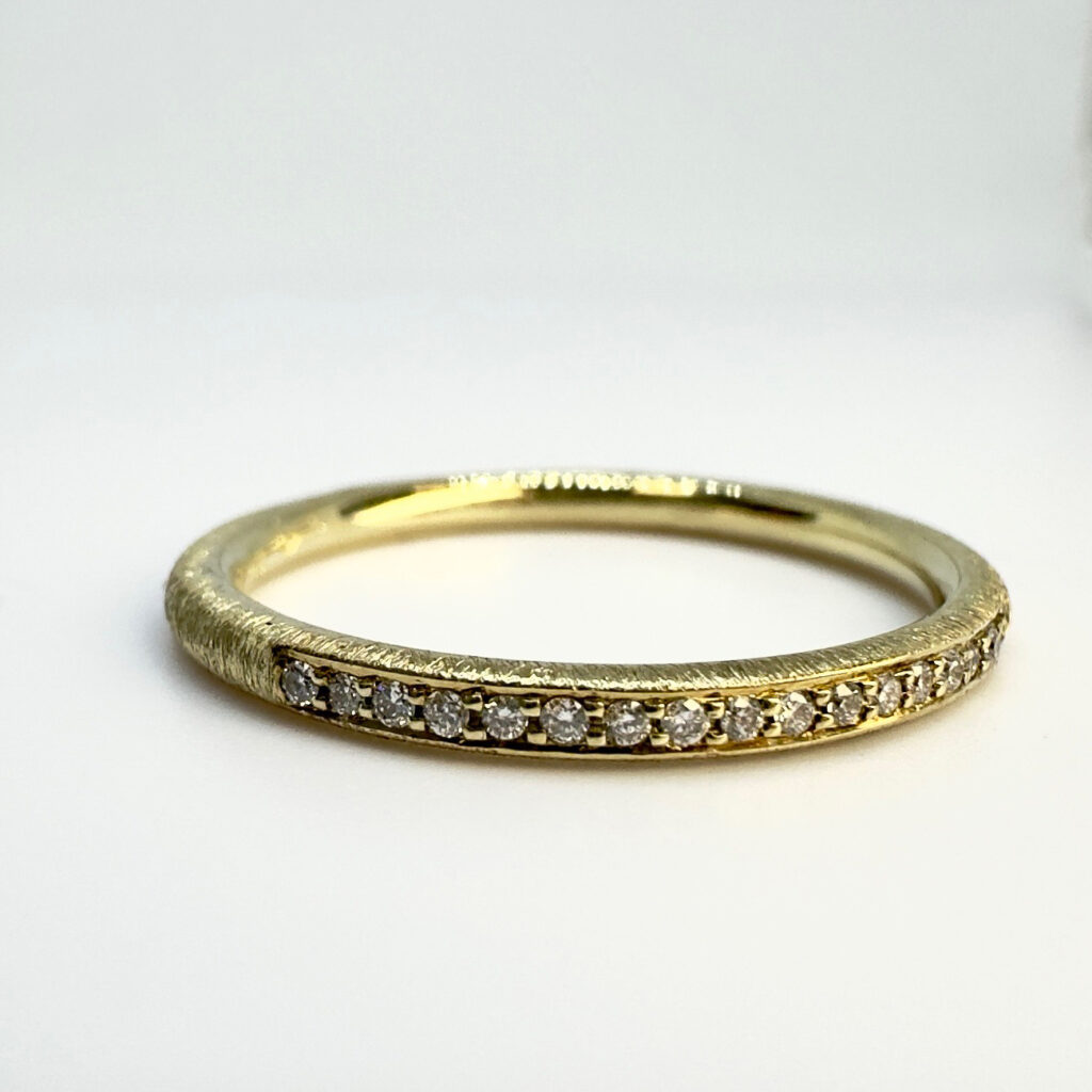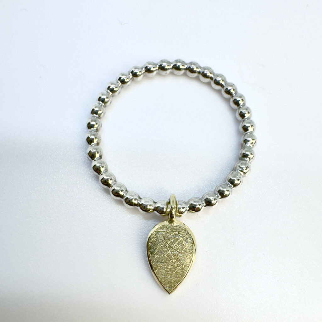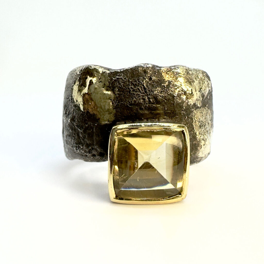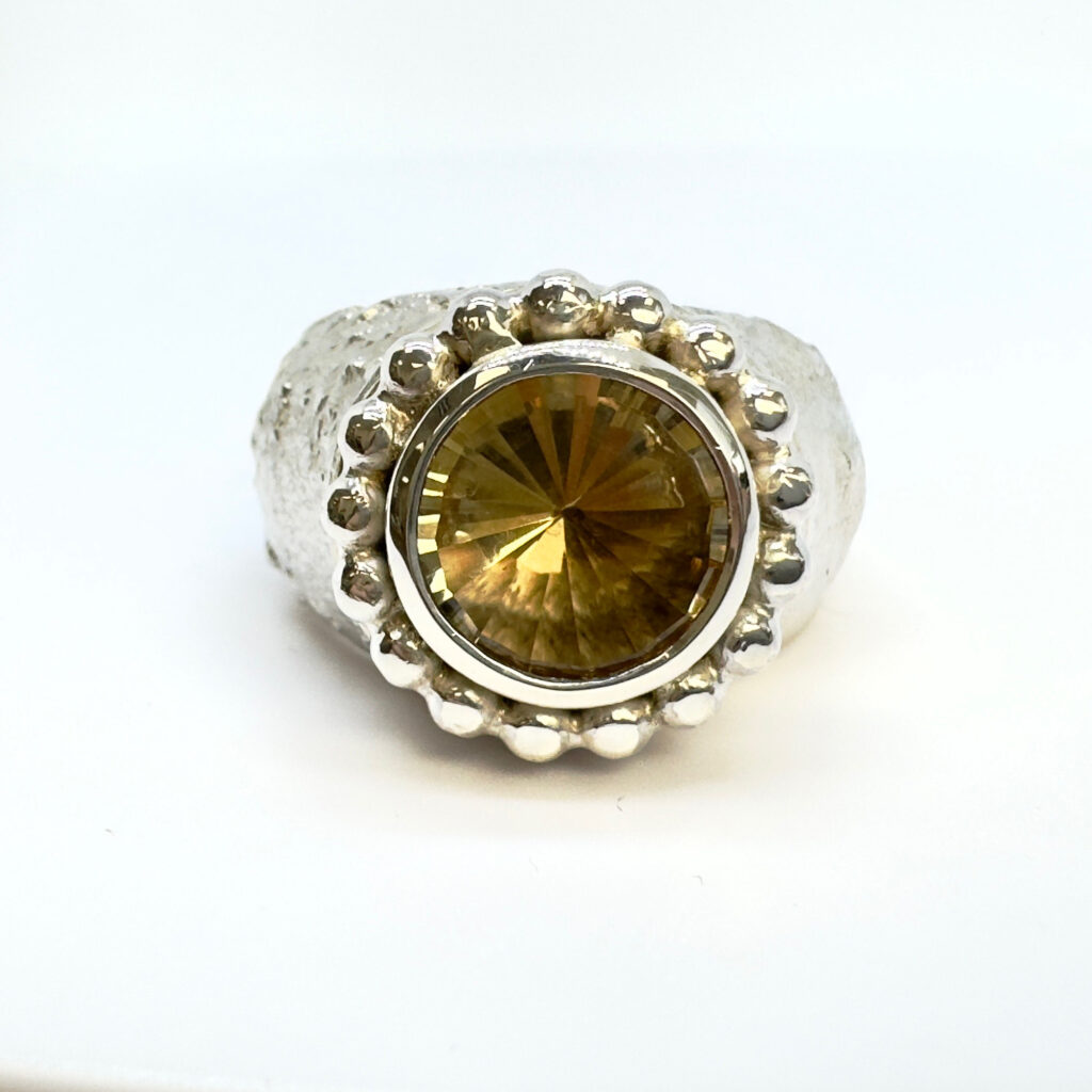 Silberring mit gehämmerter Oberfläche und pinkem Turmalin in 585 Weißgold