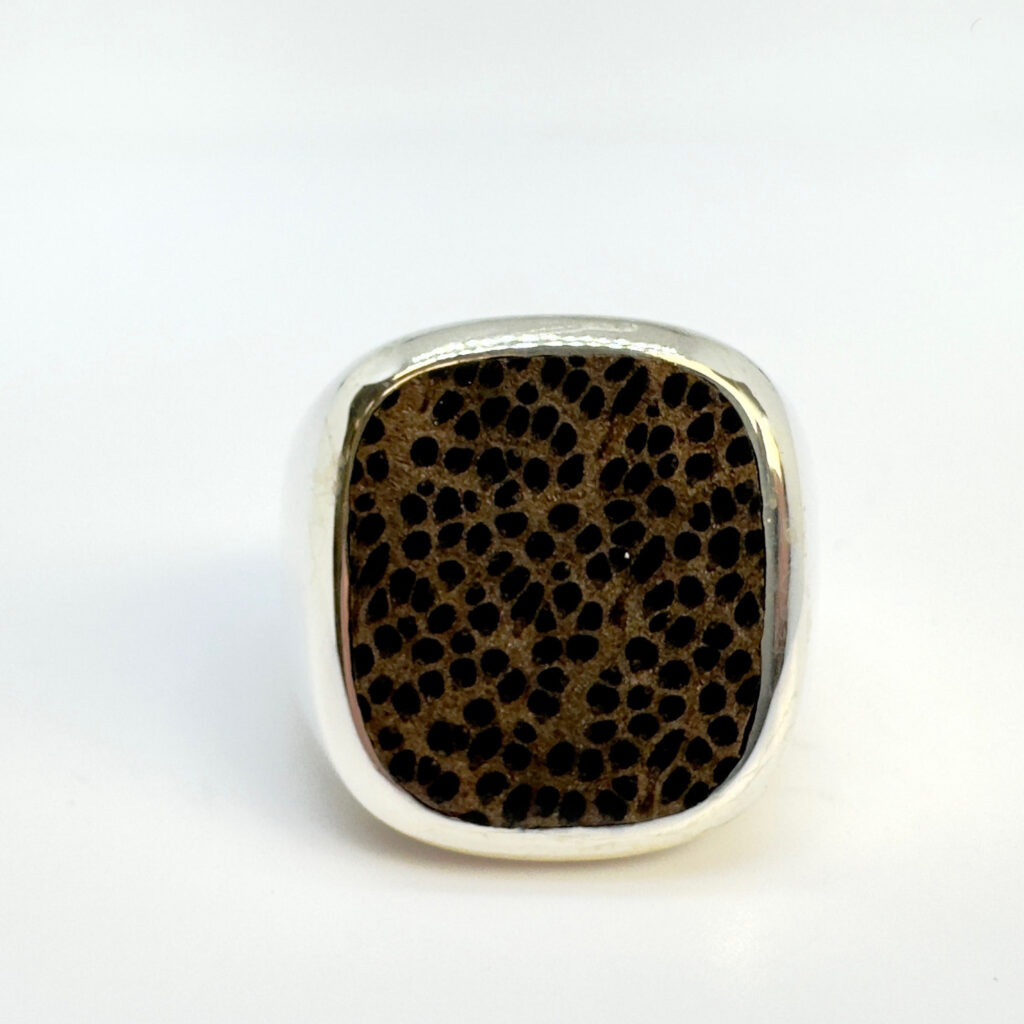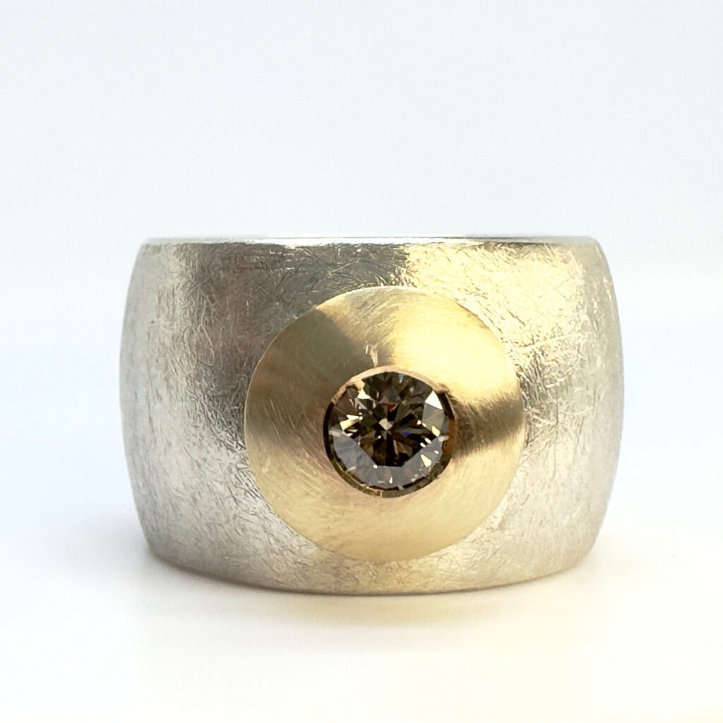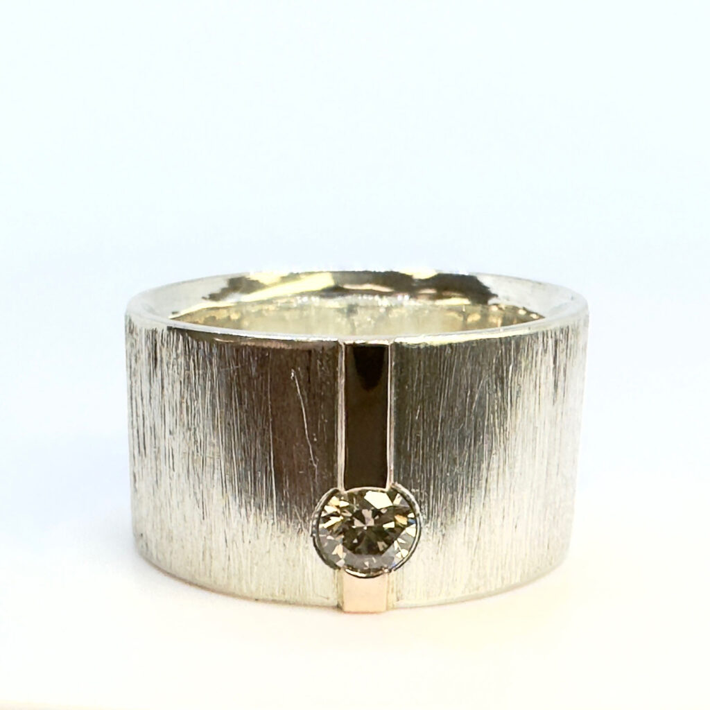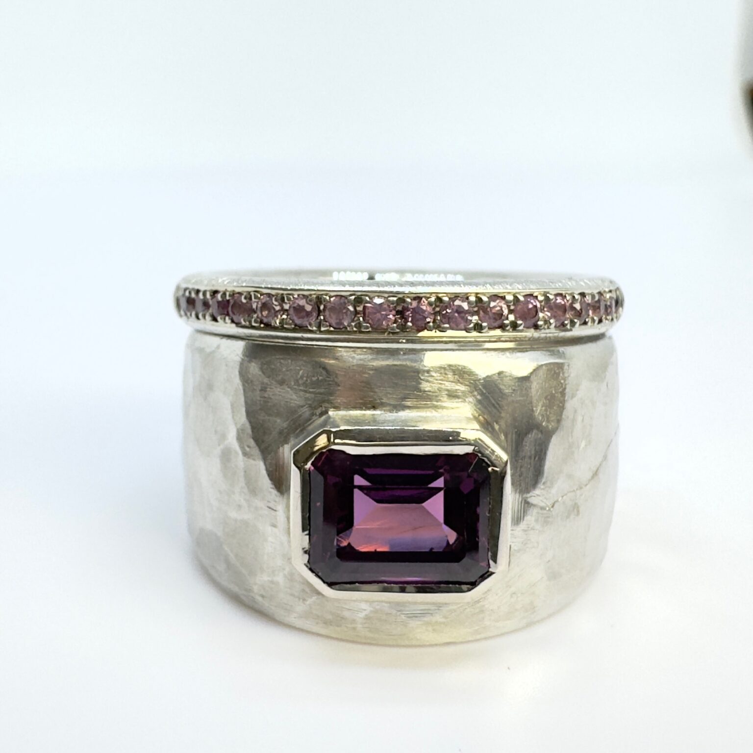 Ein markantes Einzelstück, das sich ideal mit dem passenden Silber-Beisteckring mit rosa Saphiren kombinieren lässt.